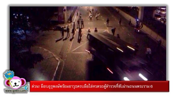 ด่วน! ม็อบอุรุพงษ์พร้อมอาวุธครบมือไล่หวดรถตู้ตำรวจที่ขับผ่านถนนพระราม 6 เมื่อสามทุ่มเศษที่ผ่านมา