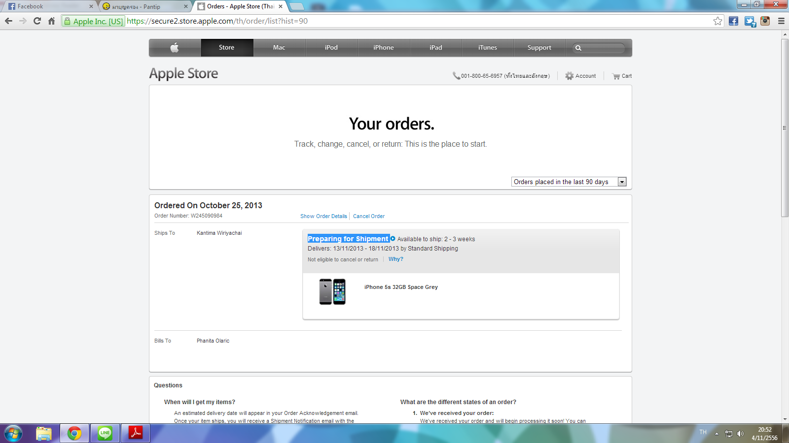ถ้าเราจะซื้อ iphone จาก apple store online ทางบริษัทจะส่งมาจากไหน ?