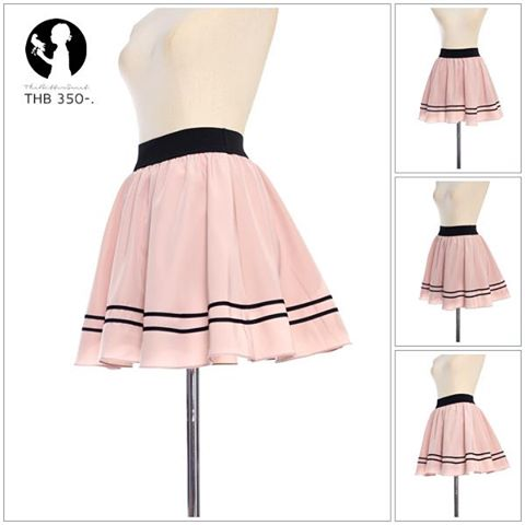 3 >>กระโปรงเอวสูง สีเขียวมิ้น มีแต่งเอวเป็นเข็มขัดเก๋ๆ