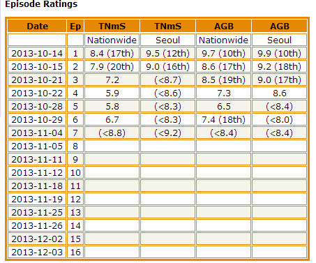 เรตติ้งซีรี่ย์เกาหลี 4/11/2013