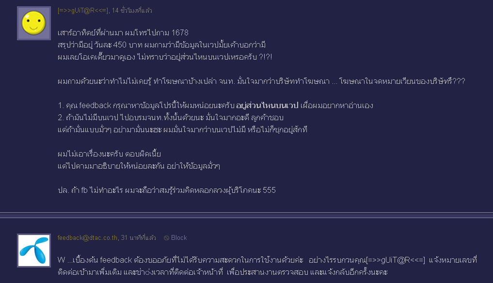 ดีแทคติดต่อมาหน่อยค่ะ โรมมิ่งใช้ไม่ได้เลย ติดต่อก็ยากไปหมด