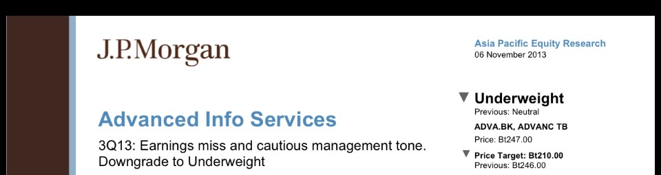 JPM ลดเป้า ADVANC สุดซอย 210 บาท