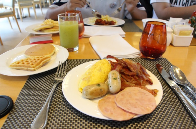 สำหรับมื้อเช้านั้นเราได้รับประทานอาหารที่โรมแรม โดยเป็นบุฟเพ่ต์อาหารเช้าตามสไตล์โรมแรมทั่วไป แต่ที่แปลกตาไปหน่อยก็คือ จะมีอาหารเกาหลีมาอยู่ด้วย และไส้กรอกกับแฮมนี่รสชาติอร่อยมาก ไม่เหมือนตอนกินที่บ้านเราเลยซักนิด ซึ่งยอมรับเลยว่าพวกเนื้อของบ้านเขานี่ทำออกมาได้ดีมาก