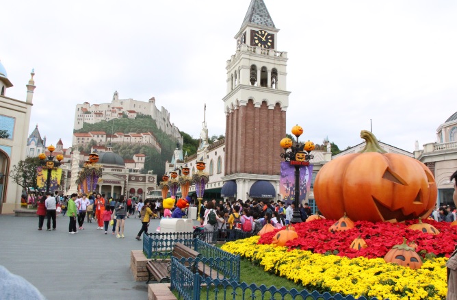 จากนั้นโปรแกรมของวันนี้ที่คณะเดินทางหลายคนรอคอย นั่นก็คือ การเดินทางไปสวนสนุก เอเวอร์แลนด์ ซึ่งเป็นสวนสนุกที่ดีที่สุดในเกาหลี และได้รับสมญานามว่าเป็นดิสนีย์แลนด์เกาหลีเลยทีเดียว โดยในธีมของสวนสนุกช่วงเวลาที่เราไปนั้นจะเป็นธีมของฮัลโลวีนครับ