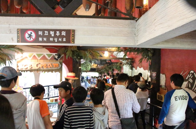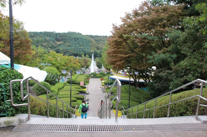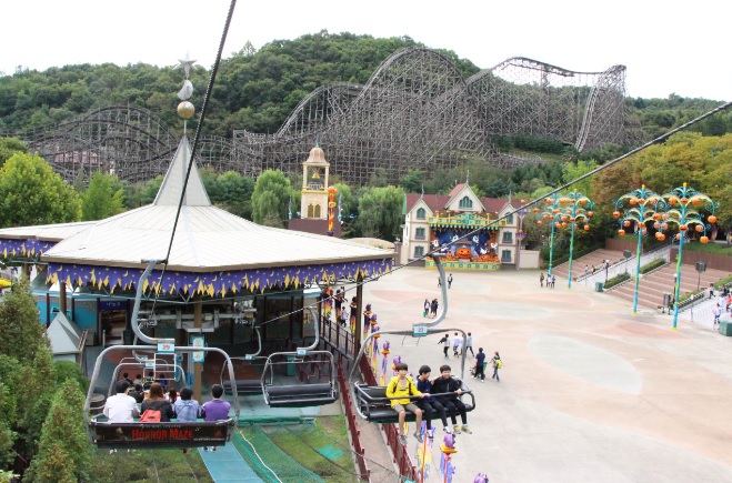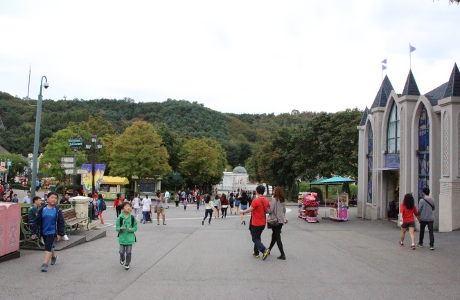 คณะทัวร์ของเราได้รับบัตรพิเศษที่สามารถเล่นได้ทุกเครื่องเล่น บรรยากาศของสวนสนุกนั้นเต็มไปด้วยวัยรุ่นชาวเกาหลีที่มาท่องเที่ยวกัน โดยไกด์ได้บอกว่าวันนี้คนไม่เยอะเพราะเป็นวันทำงานและเด็กเปิดเทอมกัน (ขนาดไม่เยอะนะเนี่ย) พื้นที่ของสวนสนุกนั้นจะตั้งบนเขา เครื่องเล่นบางส่วนจะอยู่ข้างล่างของเขา แต่ก็มีกระเช้าบริการฟรีด้วย และไกด์ได้พาไปเล่นเครื่องเล่นที่ขึ้นชื่อของที่นี่เลย นั่นก็คือ รถไฟเหาะ T-Express นั่นเอง