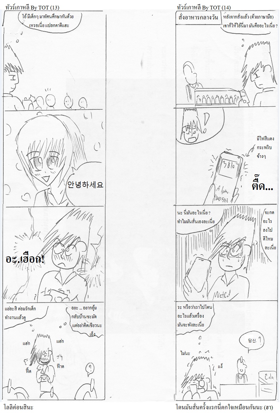 ส่วนเครื่องมือแปลกๆ นั้นมันจะเป็นเครื่องแบบในรูปข้างบนแทนเลยครับ โดยพอเวลาถึงคิวเราแล้วมันก็จะสั่นพร้อมกับมีไฟแดงกระพริบมาด้วย (อารมณ์ประมาณมือถือโทรเข้า) ก็แปลกตาและสะดวกดี แต่จริงๆ ต้องบอกว่า ตอนสั่งอาหารนี่งงกับพนักงานเหมือนกัน ซึ่งก็พอรู้อยู่แล้วหละว่าคนเกาหลีไม่พูดภาษาอังกฤษ แต่กลับไม่นึกว่าแม้แต่ศัพท์ง่ายๆ จะยังไม่รู้เรื่อง! ขนาดกระผมชี้แล้วนะว่าจะเอาอันนี้ กลับมองมาแบบงงๆ ซะงั้น แต่ในที่สุดก็สั่งได้อะนะ