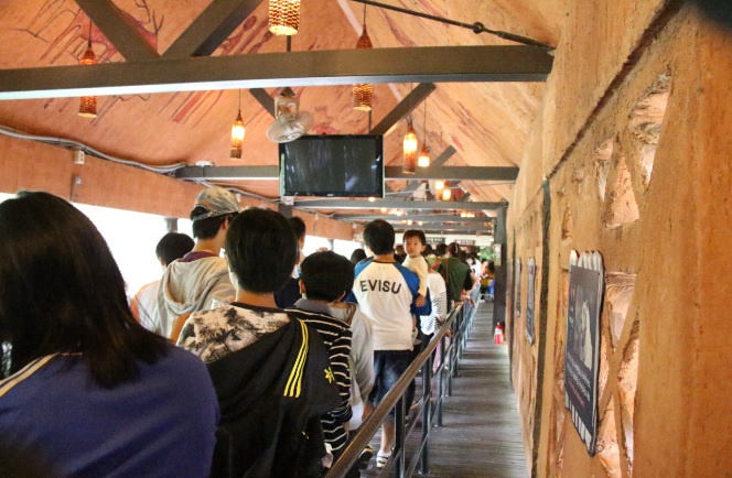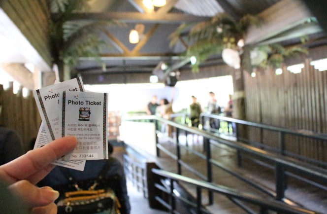 ไปจนถึงใกล้ทางขึ้นรถบัสแล้ว ก็เจอจุดถ่ายรูปที่จะให้นักท่องเที่ยวมาถ่ายรูปกันคนละใบ แน่นอนว่าตัวผมเองก็ให้ถ่ายรูปเช่นกัน พร้อมกับรับตั๋วมา เหมือนกันว่าให้ไปเอารูปได้หลังเที่ยวจบ (แต่สุดท้ายคือ เสียตังค์) แล้วก็รอไม่นานเท่าไหร่ก็มีรถบัสมาจอดรถให้เราขึ้นรถไปเที่ยวกันซะที หลังจากต่อแถวยาวมาเป็นครึ่งชั่วโมงกว่า