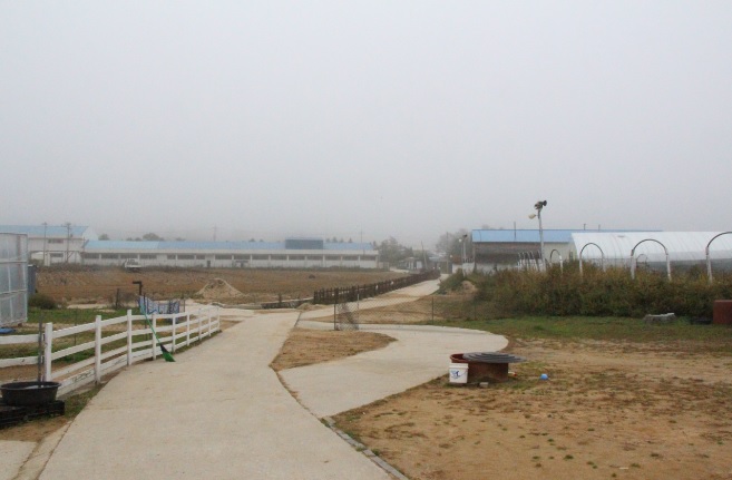 นั่งรถต่อเพื่อเดินทางไปยังอีกจังหวัดคังวอน เพื่อไปเที่ยวฟาร์มแกะที่ Daegwallyeong Sheep Ranch (น่าจะที่นี่นะ) โดยบรรยากาศตอนนี้ หมอกลงยังกับบรรยากาศตอนเช้าเลย แถมอุณหภูมิประมาณ 18 – 19 องศา มีลมพัดมาวิ้วๆๆ อารมณ์ประมาณอยู่บนดอยเลย (ชอบมว๊าก) เป็นทิวทัศน์ที่ถูกใจสำหรับคนที่มาจากเมืองร้อนอย่างผมจริงๆ