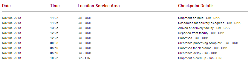 เห็นส่วนใหญ่ส่งผ่าน UPS กัน แต่ของผมเป็น DHL แอบโล่งใจเพราะมีสาขาอยู่ที่ภูเก็ต ได้ของไวไม่ต้องผ่านไปรษณีย์อยู่ แสดงวันรับของวันที่ 7