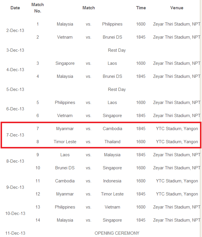 SEA GAMES 2013: Myanmar in Group B; Champ Malaysia in Group A http://www.aseanfootball.org/v2/?p=14706 SEA GAMES 2013: Myanmar in Group B; Champ Malaysia in Group A NAYPYITAW (6 Nov 2013) – H