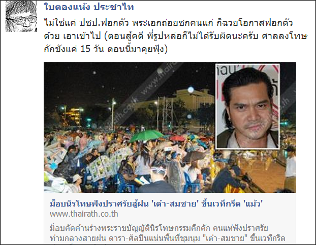 http://www.thairath.co.th/content/pol/381563 http://www.thairath.co.th/content/pol/381357 เดี๋ยวก็รู้ใผเป็นใผ ชักหมั่นไส้เหมือนกันกับพวกหน้าด้านจริยธรรมวิปริตผิดมนุษย์ครอกนี้ นกหวีดต้องเจอทีนตบสัก