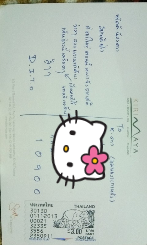 เมื่อวานนี้บุรุษไปรษณีย์สุดหล่อ ขี่มอไซด์คู่ใจมาหาสาวสวยประจำหมู่บ้าน พร้อม โปสการ์ดสวยๆ 2 ใบ แม่ถามว่า โอ ติ๊ง ต่อง คือใคร เราบอกไปว่า มันเป็นโค้ดลับน่ะแม่ 555 อธิบายไปก็ยาว อันแรก ของคนดีที่โลกรอ