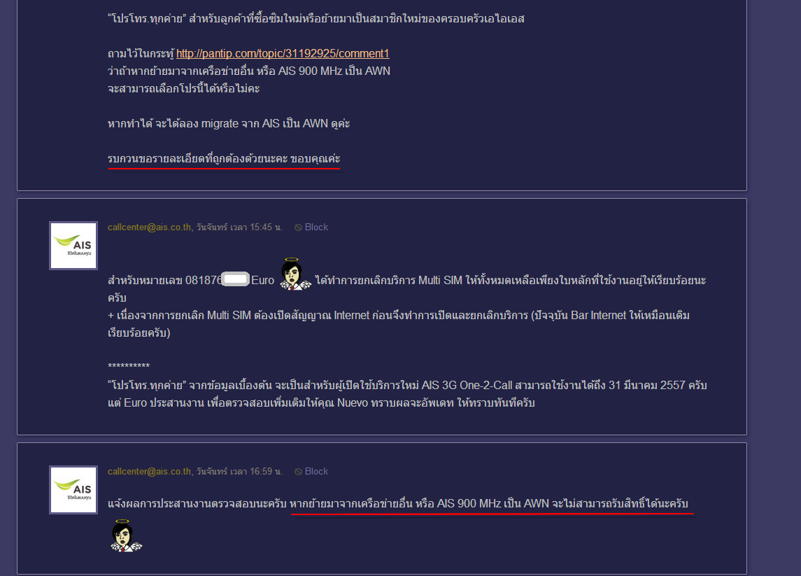 สอบถามไปว่า หมายเลขที่ย้ายจากเครือข่ายอื่นมา AWN เป็น AIS 3G 1-2-call