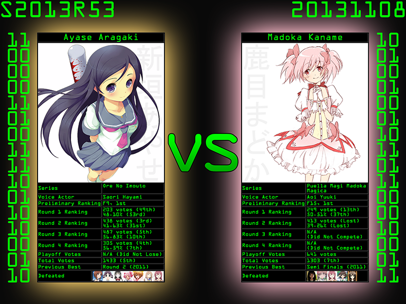 กรุณาอ่านกติกาที่ก่อนทำการทายผล http://pantip.com/topic/31104140 10/15: Group Finals - Day 2 B Final Ayase Aragaki @ Ore No Imouto Ga Konna Ni Kawaii Wake Ga Nai: <<新垣あやせ@俺の妹がこんなに可愛いわけがない。>