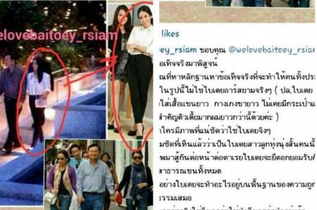 ใบเตย อาร์สยาม หลังจากภาพหลุดหน้าคล้ายตนเองเดินสวีทอยู่กับบุคคลที่หน้าละม้าย "ทักษิณ" จากนั้นมีกระแสวิพากษ์วิจารณ์ออกมาเป็นกระบุงโกย เนื่องจากการเมืองที่ยังร้อนระอุอยู่ในขณะนี้ ใบเตย จึงถูกโยงเข้ามามีเอี่ยวแบบเต็ม ๆ เรียกว่าเหตุการณ์ดังกล่าวทำเอา ใบเตย นังไม่ติดเลยทีเดียว วันนี้ (8 พ.ย.) จึงมีการแถลงข่าวประเด็นภาพดังกล่าว ทัพสื่อมวลชนเข้าร่วมทำข่าวเป็นจำนวนมาก