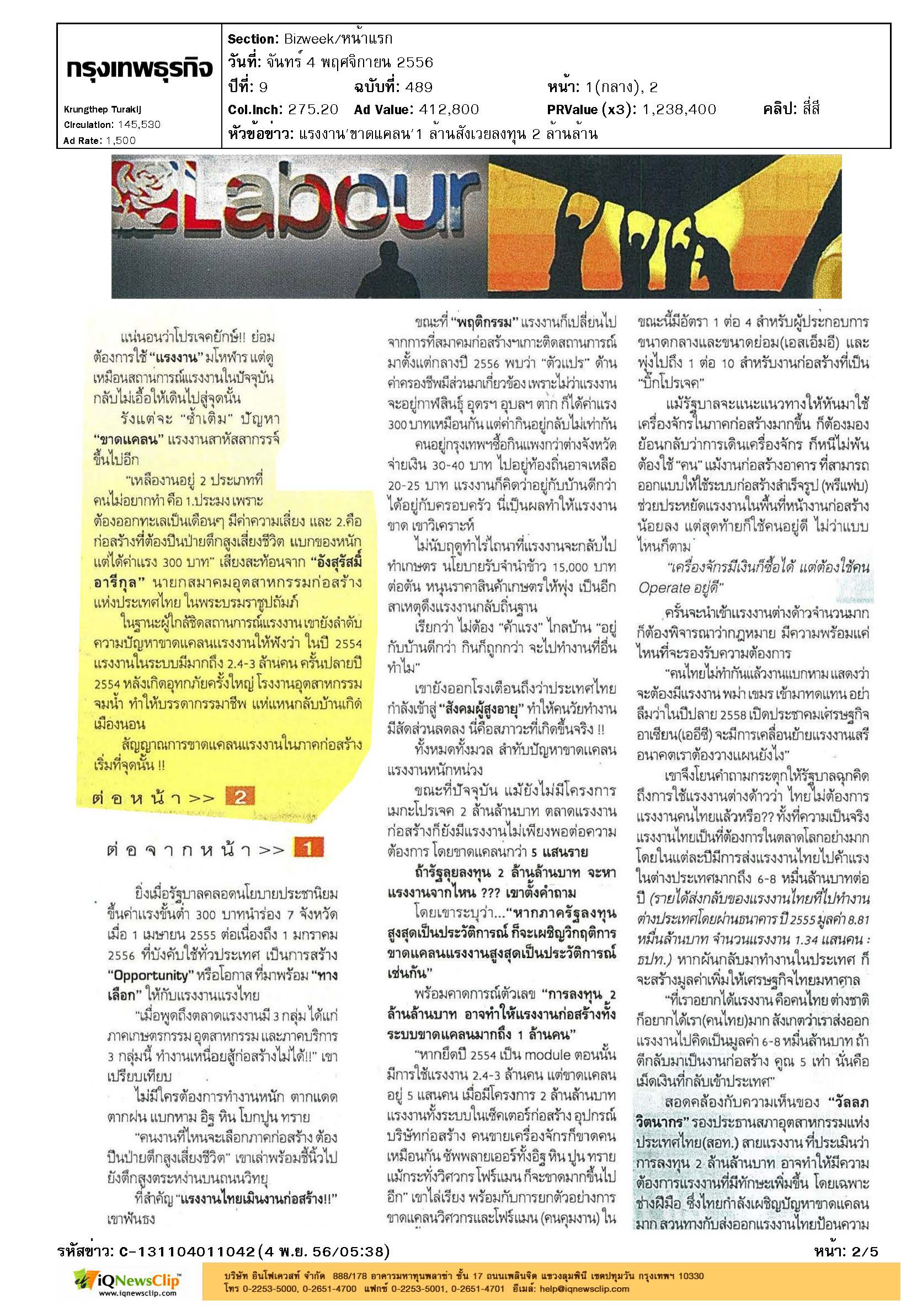 แรงงานขาดแคลน 1 ล้านคน สังเวยลงทุน 2 ล้านล้าน