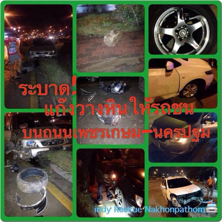 เตือนภัย ! แก๊งวางหินก้อนใหญ่ โผล่แถวถนนเพชรเกษม-นครปฐม โดยวางดักบนถนนตอนกลางคืน พบรถเกิดอุบัติเหตุคืนเดียว 5 คันรวด