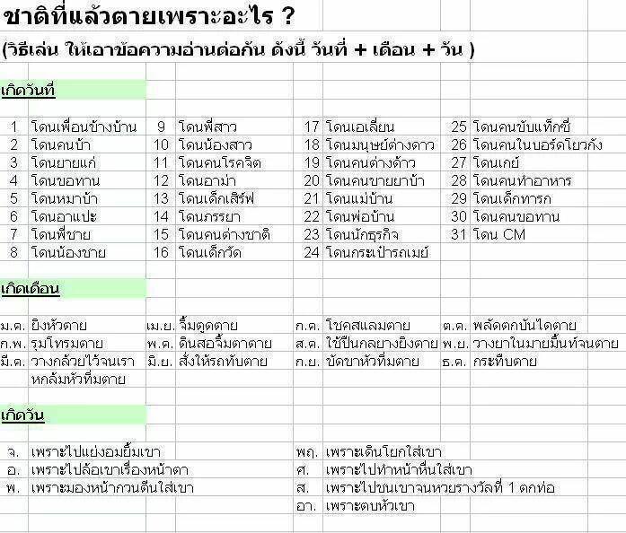 คุณอยากรู้มั๊ยว่าชาติที่แล้วคุณตายเพราะอะไร ถ้าอยากรู้ เข้ามา เข้ามาาาาาาาาา