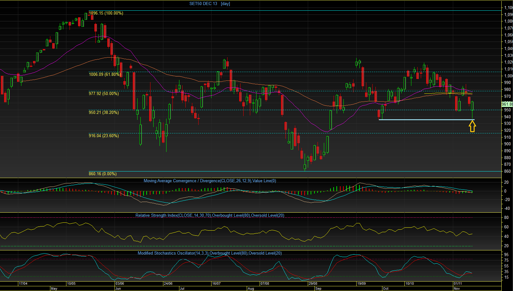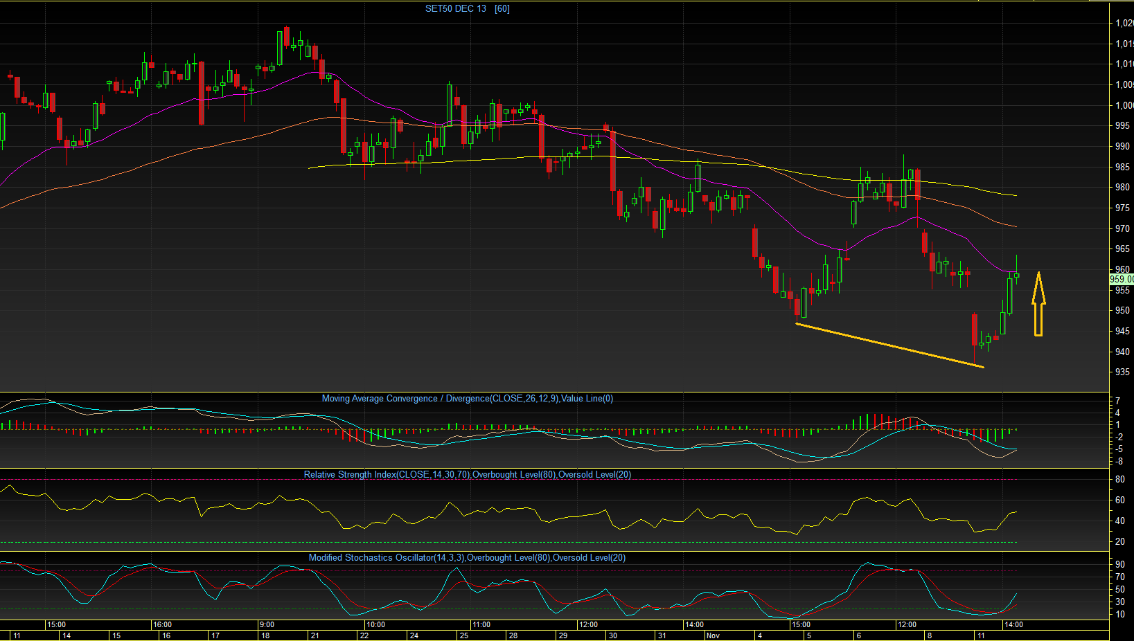 กว่า -10 จุด และเกิด Panic Sell ตามมา แต่ยังดีที่ยังไม่ สร้าง Low ใหม่ แต่ก็ไป เฉียดๆ แถวๆ Low 935 จากนั้นเริ่มมีแรงซื้อกลับ