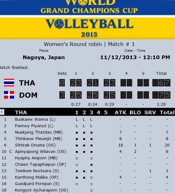 UPDATE สถิติล่าสุด หลังจบแมทช์ที่ 2 ระหว่าง RUSSIA vs DOMINICAN ยังเหลือรวมสถิติของแมทช์สุดท้ายเย็นนี้ระหว่าง USA vs JAPAN **World Grand Champions Cup 2013** Best Scorer ( ทำคะแนนมากที่สุดในทัวนา