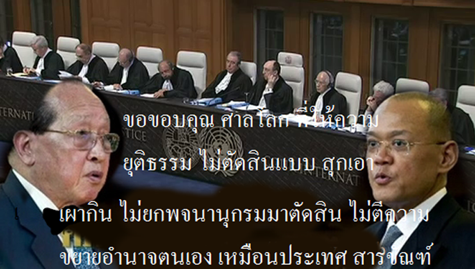 แต่ก็ผิดคาด ที่ศาลโลก มอบความยุติธรรมให้ เพื่อให้ทั้งสองประเทศ ปรองดองกัน เพื่อสันติสุขแก่ประชาชน ขอขอบคุณจากใจ ครับ !