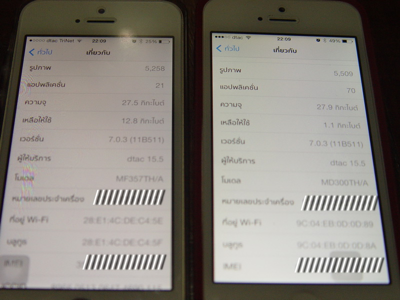 ซ้ายมือเป็น iphone 5s ขวามือเป็น iphone 5 ค่ะ (เครื่องศูนย์ Dtac ทั้งคู่ค่ะ)