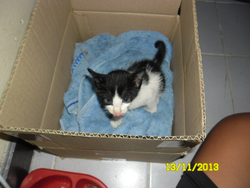 ใครใจดีรับน้องแมวตัวนี้ไปเลี้ยงหน่อยครับ ผมไปเจอมีคนเอามาทิ้ง ก็เลยพามาที่บ้านน้องแมวยังกินนมอยู่เลย ผมเองเลี้ยงไม่ได้เพราะต้องออกไปทำงานไม่มีใครอยู่บ้าน ทุกวันนี้ต้องเอาใส่กระเป๋าไปด้วย โดนหัวหน้าด่าหลายครั้งแล้ว ขอความอนุเคราะห์สงสารเค้าครับถ้าวันนั้นผมไม่ไปเจอเค้าคงโดนหมากัดแน่ๆ ผมชื่อเอ็ม อยู่แถวถนนนวลจันทร์ ซอย 40 ครับ เบอร์โทร 089-6842949