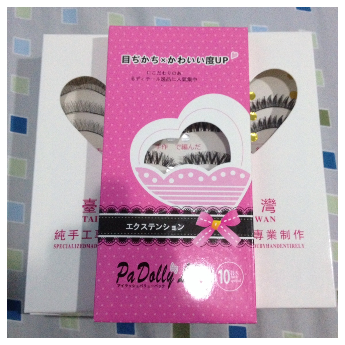 ขนตาปลอมของไต้หวันนะคะ เป็นแกนด้ายยกเว้นกล่องชมพูจะเป็นแกนเอ็นใสค่ะ