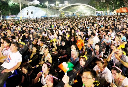 ผู้ชุมนุมที่ร่วมกันชมหน้าเวทีใหญ่ได้มากทีเดียว.