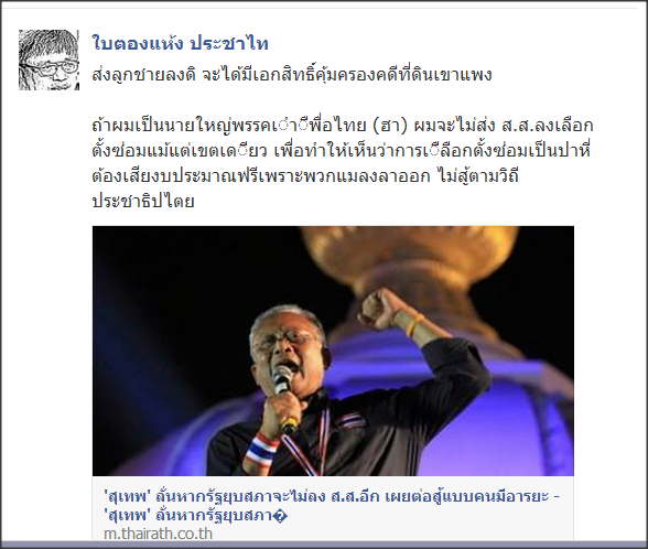 อยากให้ .. พรรค เพื่อไทย ไม่ส่งคนลงเลือกตั้งในเขต ที่ สส แมลงสาป ลาออก ตามความเห็น ของ -- "ใบตองแห้ง"