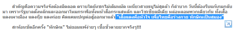 เสื้อแดงคือหัวใจ เพื่อไทยคือร่างกาย ทักษิณเป็นสมอง