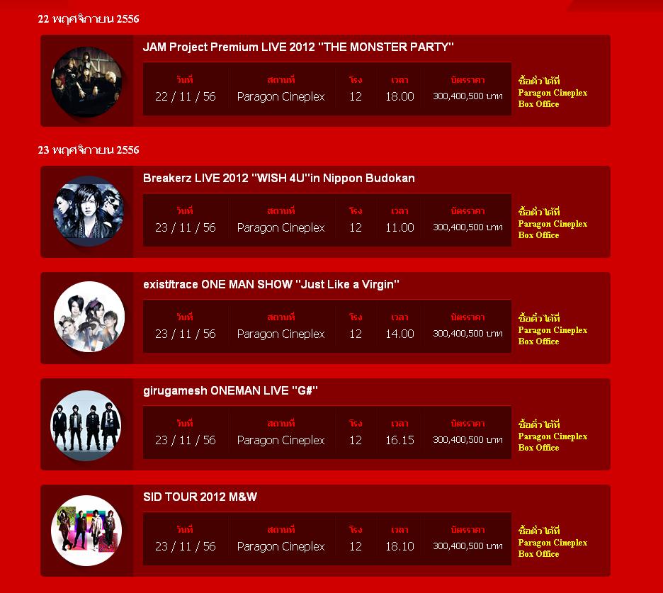 * JAM Project Premium LIVE 2012 "THE MONSTER PARTY" 22-24 พ.ย. นี้ ที่ Paragon Cineplex บัตรราคา 300,400,500 บาท