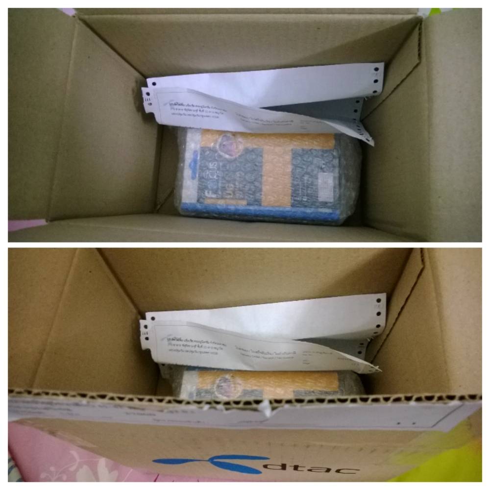 ผมแกะกล่องออกมาพอว่ามีรอยที่จอด้านบนซ้าย เลยติดต่อกลับไปยัง Dtac online store ได้คำตอบว่าไม่สามารถเคลมได้ เพราะผมไม่ได้แกะเครื่องตอนที่เจ้าหน้าที่ DHL ส่งของให้ ซึ่งในอินเตอร์เน็ตบอกเงื่อนไขว่า "