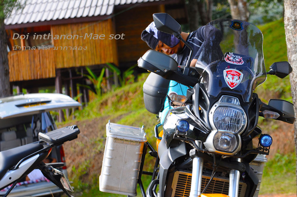 ครับกับการตั้งกระทู้ครั้งแรกในพันทิปของผม ผิดถูกยังไงก็ขออภัยไว้ ณ.ที่นี้ครับ ปกติผมชอบมาแฝงตัวเเอบดูทริปขี่มอเตอร์ไซค์ท่องเที่ยวของคนอื่นอยู่ประจำอาทิเช่น จารย์บิ๊ก, คุณก๊อบหรืออีกหลายๆท่านที่โพสในนี้ ก็อยากลองโพสทริปของตัวเองบ้างซักครั้ง ทริปนี้ก็เกิดจากการที่เพื่อนในกลุ่มได้รับเชิญไปร่วมงานเเต่งที่ อ.แม่สอดในวันที่ 2 พย.56 จึงได้ชวนกันขี่มอเตอร์ไซค์ไปงานแต่งกันและถือโอกาศเเวะเที่ยวที่อื่นด้วยเลยไหนๆก็ได้ออกจากบ้านกันเเล้ว ก็เลยชวนกันไปเที่ยวดอยอินทนนท์กันก่อนแล้วจึงค่อยกลับมางานเเต่ง จึงชักชวนเพื่อนสนิทที่กระหายอยากขี่รถหลังจากที่จอดนิ่ง หลบฝนอยู่ในโรงรถมาเป็นเเรมเดือน ก็ได้สมาชิกมา 5 คันกับผู้ร่วมเดินทาง 9 ท่านครับ ส่วนตัวผมก็เลยวางแพลนกันก่อนหน้าเป็นแรมเดือนกันทีเดียว ว่าจะเที่ยวตรงไหน? นอนที่ไหน? หาข้อมูลกันเยอะเเยะไปหมด ผลสรุปก็เลยคืนวันที่ 1 พย.นอนที่ดอยอินทนนท์ คืนวันที่ 2 พย.นอนที่ อ.เเม่สอด ก็เลยจองที่พักที่ดอยอินทนนท์ได้ที่พักที่ ดอยชัวร์ญ่าวิวสวยในคืนแรก ส่วนคืนวันที่ 2 ก็ได้ที่ บ้านเคียงจันทร์รีสอร์ต จึงได้เริ่มนัดกันออกเดินทางกันเวลา 21.00 น.ในวันที่ 31 ตค. 56 บนถนน คลองเจ็ด-วังน้อย แล้วก็ขี่ยาวๆไปพักค้างคืนกันที่ นครสวรรค์ครับ พอรุ่งขึ้นก็เดินทางกันต่อ บนเส้นทาง นครสวรรค์-เถิน-ลี้-บ้านโฮ่ง-จอมทอง-ดอยอินทนนท์ครับ ถึงที่พักกันเวลาบ่ายสามโมง ก็ได้จับกล้องมาถ่ายรูปที่นี่ละครับ