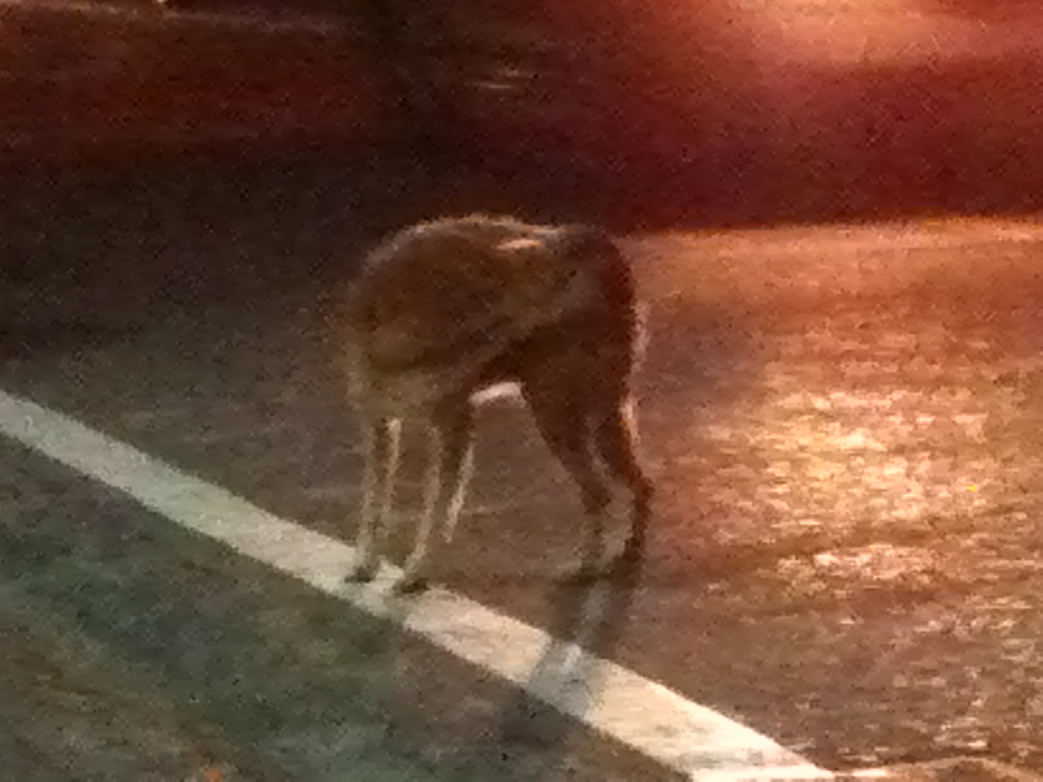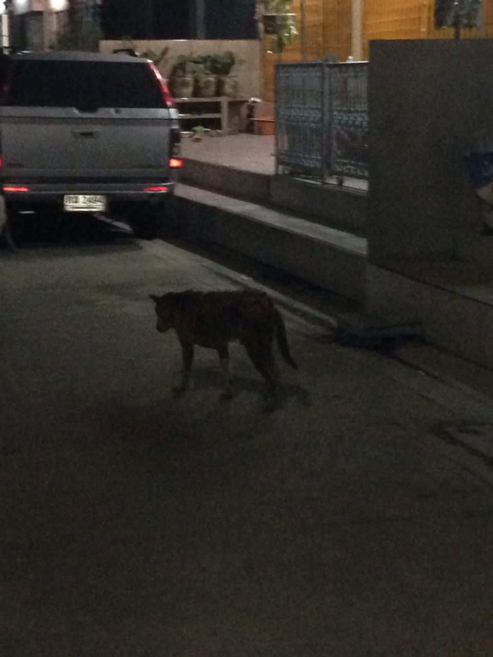 ตกดึกผมเลิกงานกลับมา เจอพยายามอีกครั้งที่จะถ่ายรูปให้ชัด น้องหมาก็เดินหนีเช่นเคย เลยเดินไปซื้อลูกชิ้นหน้าปากซอยมา โยนให้กิน ก็ไม่ยอมกินเข้าไปนอนอยู่ใต้ท้องรถ ถ่ายออกมาก็มืด ไม่ชัดอยู่ดีครับ วันอาทิตย์ผมว่าง พยายามจะไปถ่ายใหม่อีกครั้ง ใครที่อยู่ใกล้ๆ กำนันแม้น 17 ก็แวะมาดูอาการน้องหมาได้ครับ อาการแย่มากๆๆ ถ้าใครแวะมาน้องหมาจะชอบอยู่ในซอยตรงข้ามเต้นท์วินมอไซค์ ถ้าหาไม่เจอถามวินดู เค้ารู้ครับ