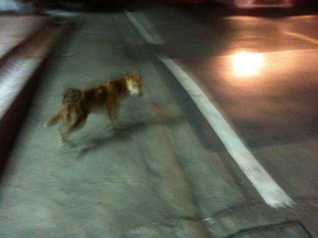 เลยไปลอยกระทงกลับมา เจอน้องหมานอนอยู่ เดินเข้าไปถ่าย แต่ก็วิ่งหนี นั่งรอให้เข้ามาใกล้เอง ครึ่งชั่วโมงก็ไม่ยอมมา