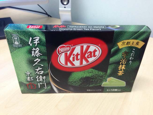 1. Kitkat ชาเขียว Kyoto Edition ทำจากชาเขียวคุณภาพดีกว่า Kitkat ชาเขียวธรรมดา มีขายเฉพาะแถบคันไซเท่านั้น มี 4 กล่อง ราคากล่องละ 480 บาท