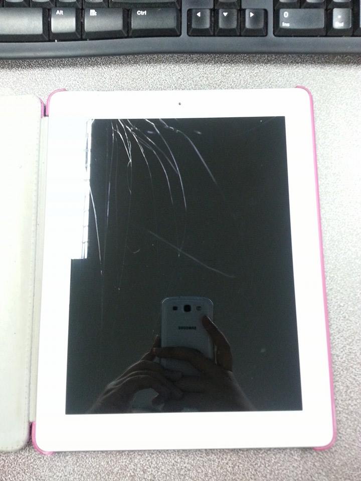 เปิดกระเป๋าดูไอแพต ปรากฏว่าหน้าจอแตกร้าวบริเวณด้านซ้าย เป็นแนวยาว (ตามรูป)