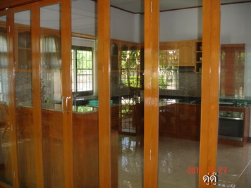 7. ประตูบานเฟี้ยมกั้นจากห้องครัวป้องกันกลิ่นอาหาร