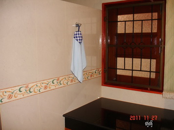 หลังบ้านจะปิดด้วยเหล็กกันขโมย เเต่โปร่งเพื่อให้ลมถ่ายเทสะดวก