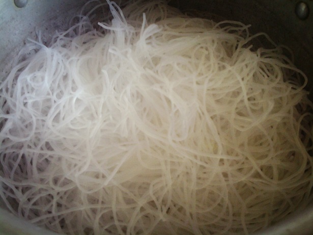 คือนำวุ้นเส้นกับถั่งอกลวกในน้ำเดือด มะละกอไม่ต้องนะคะ