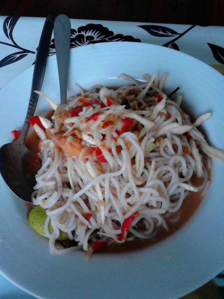 ตำซั่ว มั่วได้อีก เส้นขนมจีนที่แอบเหมือนของเมืองไทยไม่รู้มาจากไหนคงมาจากจีนหรือเวียดนามอ่านไม่ออกหุหุ
