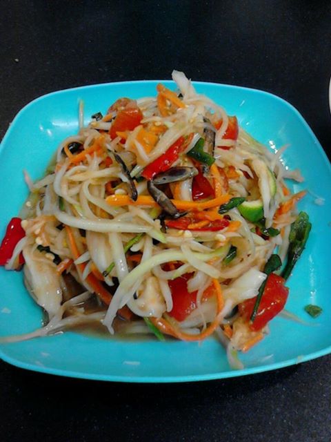 แสร้งว่าส้มตำ ทำไมแสร้ง? อ้าวก็มะละกอไม่มีน่ะสิเลยใช้แครอทแทน มะละกอมีแต่อยู่ร้านเอเชียโน่นใช้แครอทก็อร่อยนะคะ