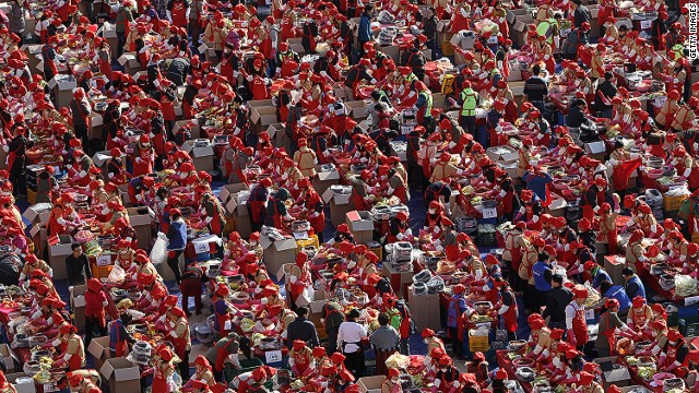 แม่บ้านเกาหลี 3,000 คน รวมตัวกันทำกิมจิ 250 ตัน สร้างสถิติโลก !!!