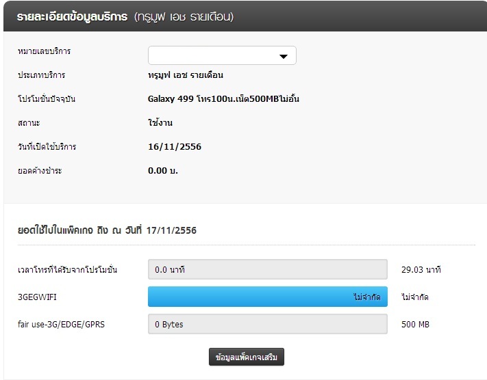 ขึ้นโปร 499 โปร 100 เน็ทไม่อั้น 500MB