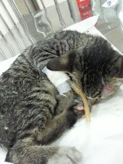 เพิ่งถูกรถชนมาคะ ตอนนี้พามาให้น้ำเกลืออยุ่ รพ.สัตว์เล็กจุฬา