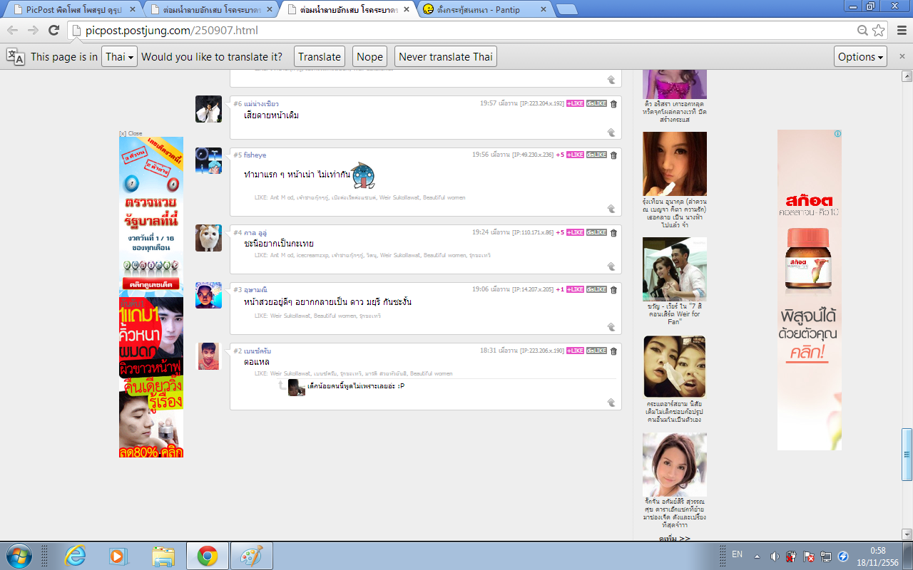 คือไปที่เว็ปโพสจังแล้วเจอแบบนี้ เราอยากจะบอกนะคุณติ่งไร้ปัญญา สามัญความเป็นคนของคุณน้อยนิดมาก ทั้งๆที่ตอนนี้แพทต้องเจอเรื่องแย่ๆมากมาย แต่คุณยังเอาเรื่องอดีตกลับมาทำใหม่ เพื่อความสะใจที่ให้คนอื่นที่ไม่รู้าด่า มาว่าแพท แค่นี้แพทก็แย่แล้ว คุณปล่อยแบบดิสเครดิสแบบนี้รู้ไหมมันส่งกระทบหลายอย่าง คนก็จะแอนตี้แพทมากขึ้นที่โกหก งานก็จะน้อยลง แต่รู้ไหม ภาระแพทเยอะมาก ถ้าไม่มีงานเค้าจะอยู่ยังไง โปรดคิดหน่อย ใช่ว่าเพียงแต่สนุก เพื่อบลัฟฝ่ายตรงข้าม สงสารแพทนะที่เรื่องนี้มันยังไม่จบสักที เป็นกำลังใจให้แพทเสมอนะ