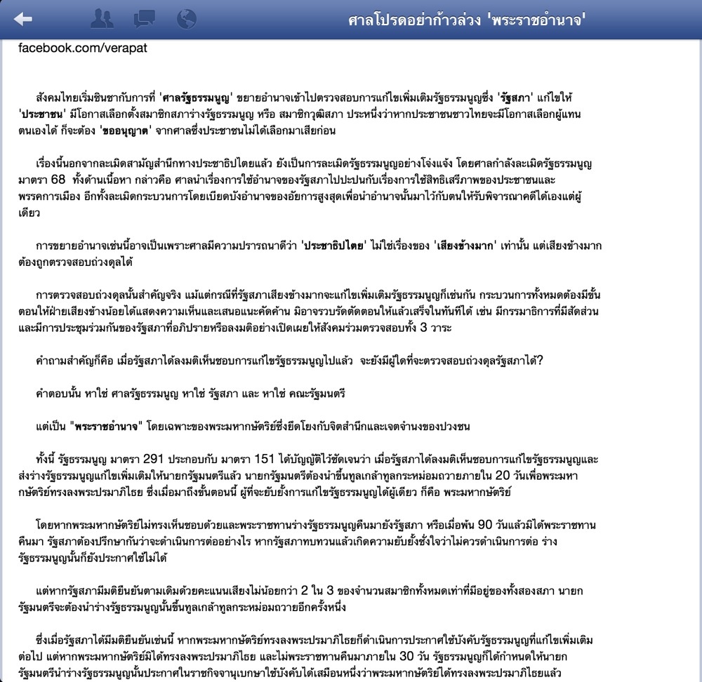 อจ วีระพัฒน์ ปริยวงค์ ได้เขียนบันทึกใหม่ "ศาลโปรดอย่าก้าวล่วงพระราชอำนาจ