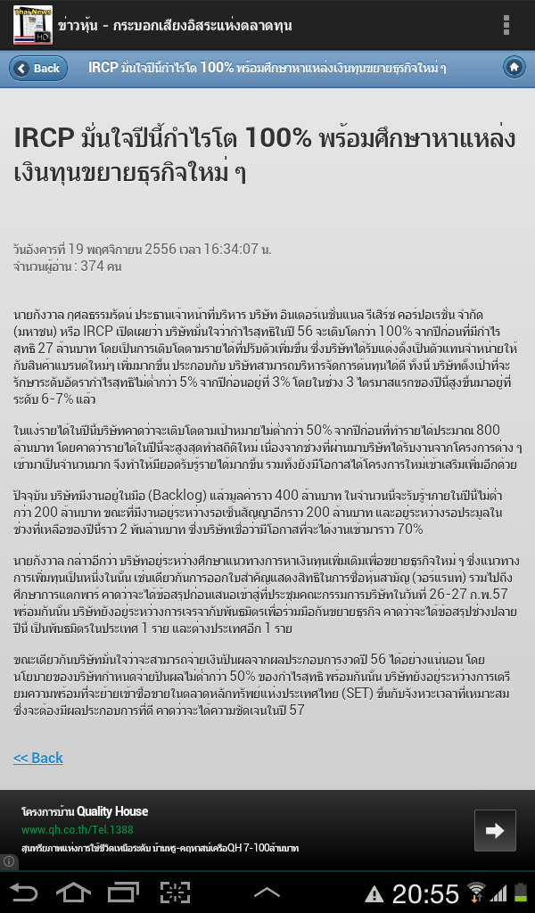 ข่าววันที่ 13/11/2558 IRCP ฟุ้งกำไรไตรมาส 3/2558 โตสนั่น งบไตรมาส 3 ที่ประกาศ(ประกาศวันที่12/11/2558)