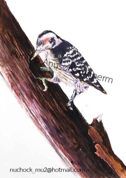 ภาพวาดสีน้ำ นกหัวขวานลายจุด